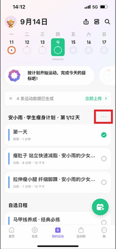 进入我的运动页面,找到需要取消的训练计划,点击屏幕右侧的“三点”按钮;