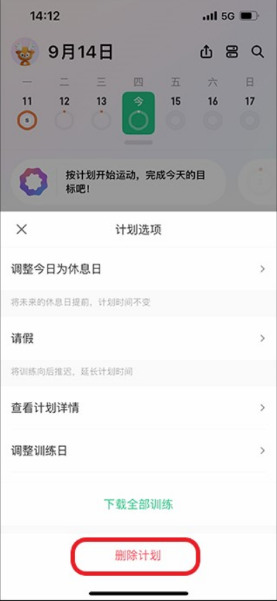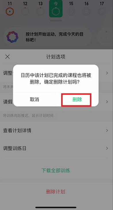 最后在弹出的提示框中点击“删除”按钮即可成功取消训练计划。