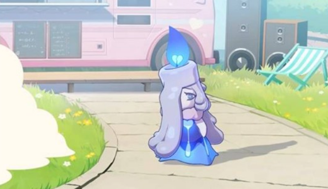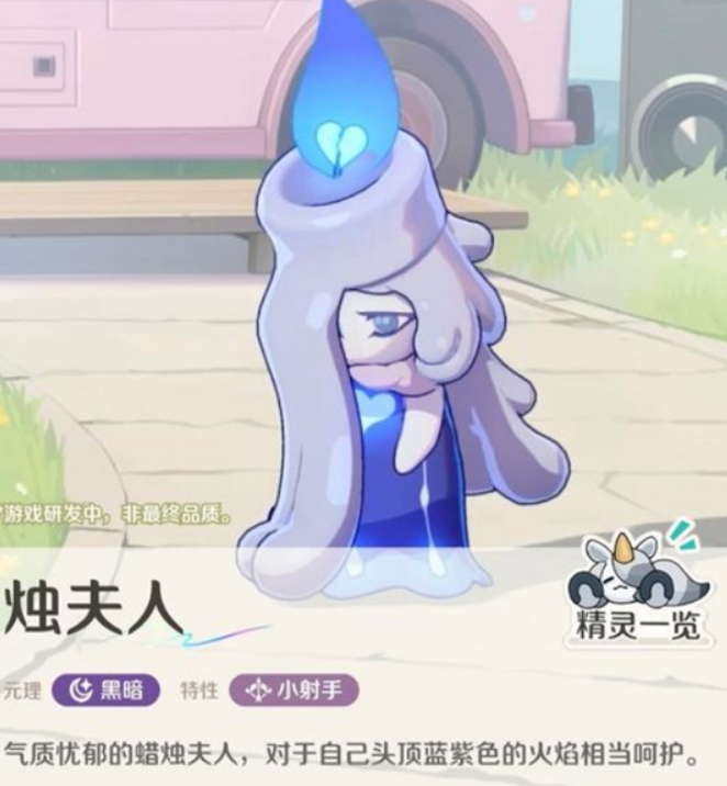 烛夫人在崩坏因缘精灵中的形象十分独特,整体呈现为一支燃烧的蜡烛形态,滴落的蜡质如同长发般垂下,赋予她女性精灵的柔美感。她头部的火焰散发出蓝紫色光芒,与她的黑暗元理属性相呼应,整体气质偏向忧郁神秘。这种视觉设计不仅让她在图鉴中一眼可辨,也暗示了她在战斗中的特殊定位与能力倾向。