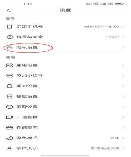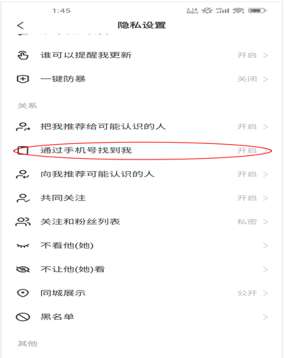 进入到隐私设置页面,找到并点击“通过手机号找到我”选项;