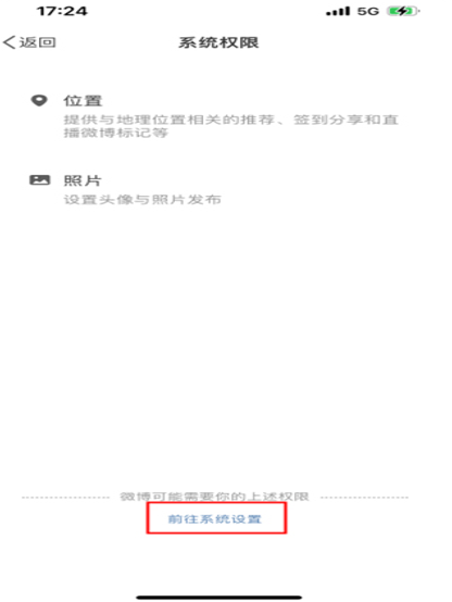 进入到系统权限页面,可以看到有位置这项权限,点击页面底部的“前往系统设置”按钮;