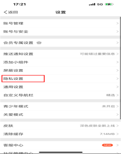 进入到设置界面,再点击“隐私设置”选项;