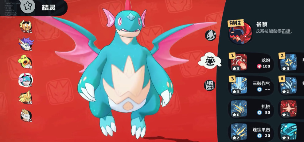 选择了翼龙后同样也是让翼龙去学习热身运动、三鼓作气以及乘胜追击这三个技能,这样翼龙在战斗的时候就能叠高buff,打出连击了,不过翼龙在打出连击的时候,所消耗的能量也是非常的高,所以玩家还需要搭配上一只学会了湿润印记的水系精灵,这里首推大家选择圆号鱼,圆号鱼在地图的最下角向日葵海岸下方就能够捕捉到,把圆号鱼的第三档图鉴给完成,拿到奖励后就能够获得湿润印记技能,这样翼王热身连击流派就搭配好了。