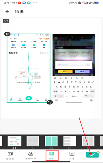 来到拼图页面,选择好合并图片模板之后点击右下角的“勾号”按钮即可。