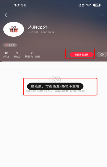 显示拉黑成功后,再刷新下也可以点击“解除拉黑”,这个随用户需求