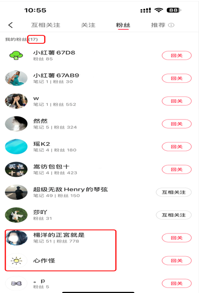 在拉黑后就会将这个粉丝直接移除出你的粉丝列表了,最后刷新一下粉丝列表你就会发现已经减少了,像小编这里就已经从18个粉丝变成了17个