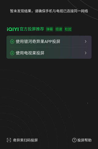 请确保手机与投屏设备连接的是同一网络,否则会出现如下错误