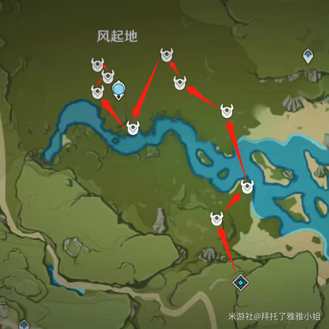 采集风车菊时,建议大家带上可莉 米卡,其特有天赋会在小地图上显示周围的蒙德区域特产的位置。第一次采集时记得做好标记,以后再采集时就不需要特意带上可莉、米卡了,跟着标记和路线图就可以。