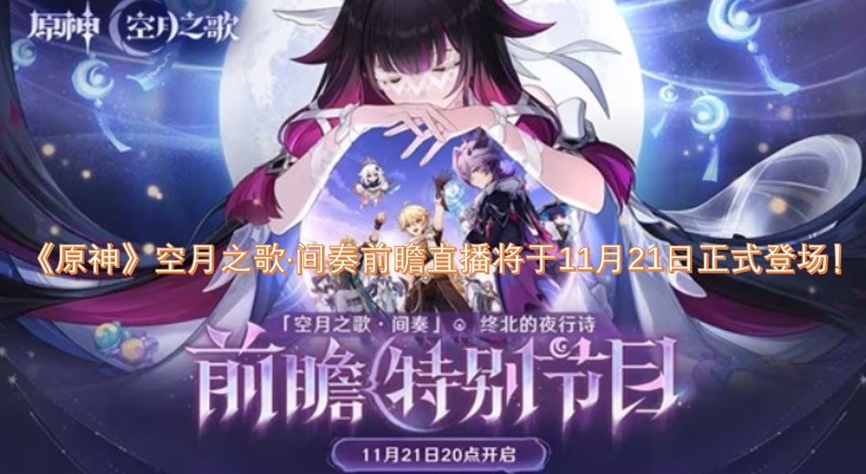 《原神》「空月之歌·间奏」终北的夜行诗前瞻特别节目将于11月21日(本周五)20:00正式开启。旅行者们记得准时锁定直播间,不要错过任何精彩内容。