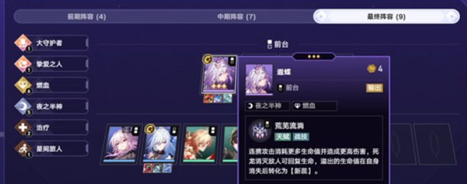 这一流派围绕遐蝶作为主C构建,搭配燃血与夜之半神双重羁绊,不仅具备高额爆发伤害,还能通过夜之半神的挖矿机制获取额外资源收益。推荐阵容为6燃血5夜之半神或7夜之半神4燃血,核心角色包括遐蝶、长夜月、镜流、罗刹、风瑾和丹恒藤荒。遐蝶需在商店中追至三星以发挥最大潜力,装备优先分配给遐蝶,其次为镜流,若有余力可为万敌装配输出装作为副C。风瑾和丹恒藤荒则优先装备辅助类装备,提升全队生存与功能性能。成型后遐蝶召唤的死龙可对敌方造成毁灭性打击,大幅削减对手生命值。