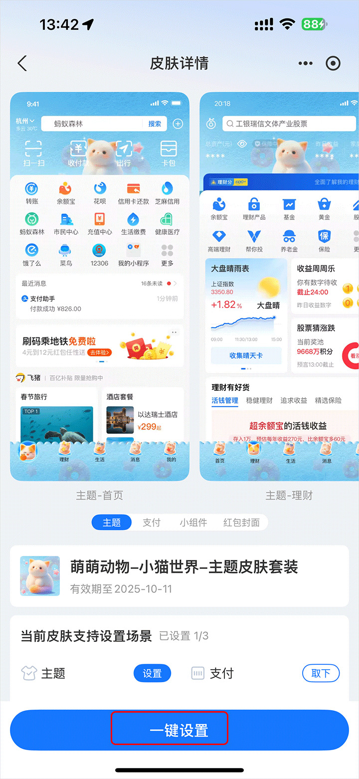 后点击下方一键设置即可装扮成功,回到首页后就会发现是新的页面皮肤了