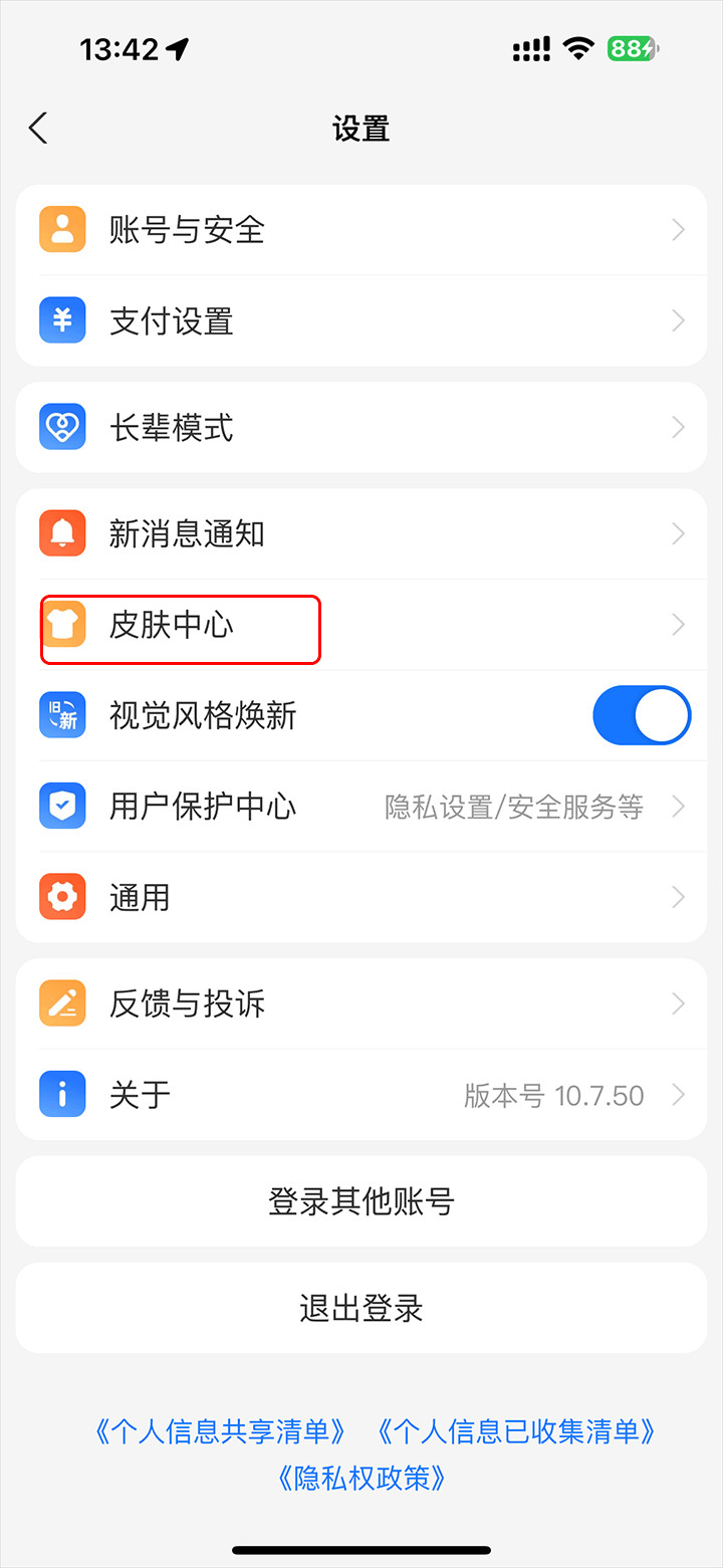 如果你没支付皮肤的话,可以在“设置”中进入“皮肤中心”领取