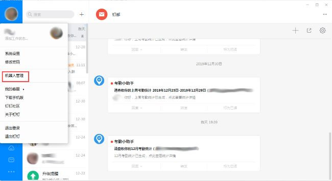 点击软件左上角的头像框,选择下方选项列表中的"机器人管理"。