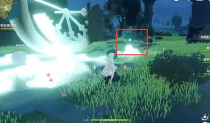 抵达千风神殿后,找到NPC亨利莫顿并与之对话,获取任务背景信息。接着检查其帐篷内的笔记本,再次将游戏时间调至凌晨2点,开启元素视野,此时周围会出现新的绿色光球。与之前类似,击碎这些光球会引发风史莱姆出现。