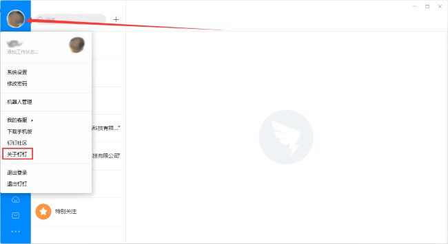 点击软件左上角的头像框,选择下方选项列表中的"关于钉钉"。