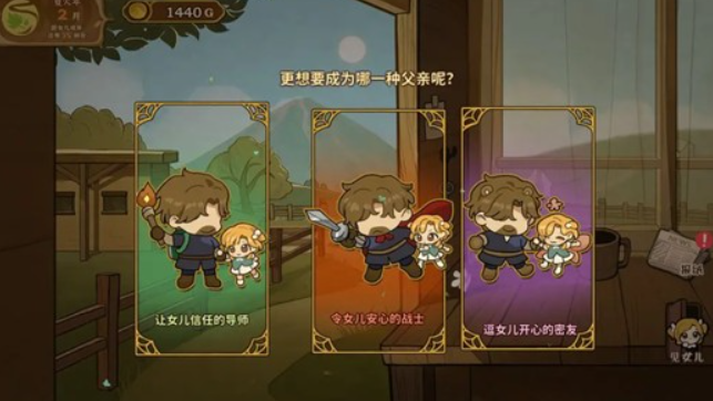 这一形象侧重于智力与理性方面的引导。当玩家选择以睿智的父亲身份回应女儿的问题时,会提升“爸爸很睿智”的评价权重。此类选项通常出现在涉及学习、思考或解决问题的情境中,例如图书馆复习或故事书讨论环节。选择正确的答案不仅能增加女儿的头脑与想象力属性,还能强化父女之间的信任关系。