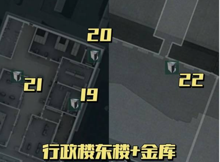 来到行政楼东楼一楼设备领用室刷卡进入就能找到19号电脑机箱(这里可以透过玻璃直接查看房间内);出了设备领用室之后来到隔壁房间,穿过一堆书架一直往里走,来到最里面的房间内就能看到20号电脑机箱;21号电脑机箱也非常容易找到,从设备领用室出来后直接往地图方向左下角移动一段距离后能看到三个木质柜子,翻过去之后可以看到几个零零散散的办公桌,随后往里一走就能在办公桌下找到对应的电脑机箱了;我们最后一个电脑机箱就在大坝内部金库门口的右侧,也非常容易找到。