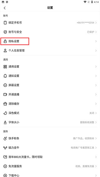 进入页面后点击隐私设置
