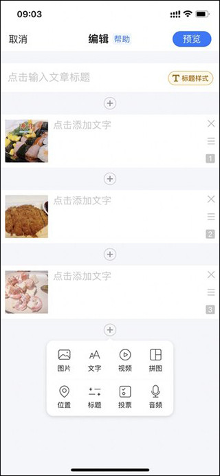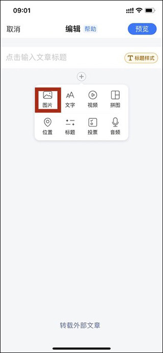 图片上传成功,输入“标题”及“图片描述”,点击“预览”;