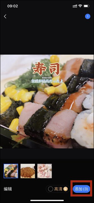 接着在手机相册中,选中并添加图片,点击“添加”;