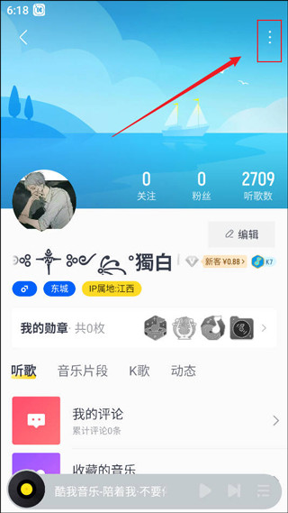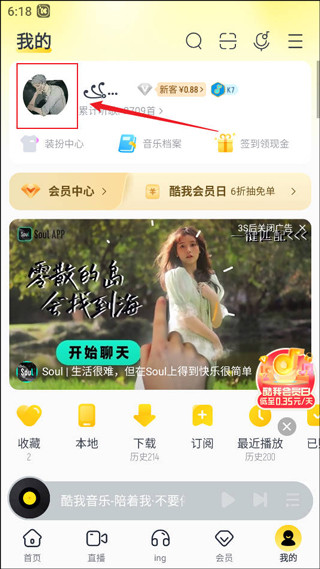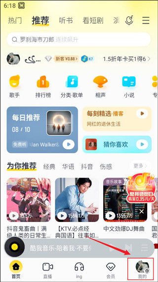 在酷我音乐首页点击右下角我的按钮进入个人主页