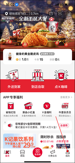 打开肯德基app,进入到app首页,点击页面右下角的“我的”按钮;