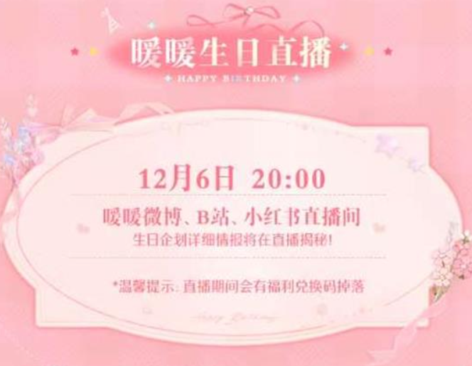 《无限暖暖》官方宣布繁花微梦愿落成歌生日特别直播将于来临的12月6日20:00正式开播。这一次的直播将于微博、B站、小红书三大平台同步直播!以下是小编为玩家们带来详细的活动资讯,有兴趣的玩家们快来一起看看吧!