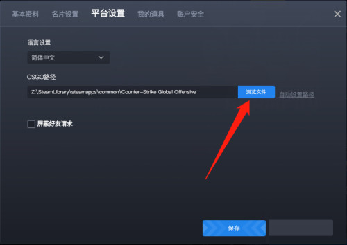 然后点击下方"CSGO路径"右侧的"浏览文件"按钮。