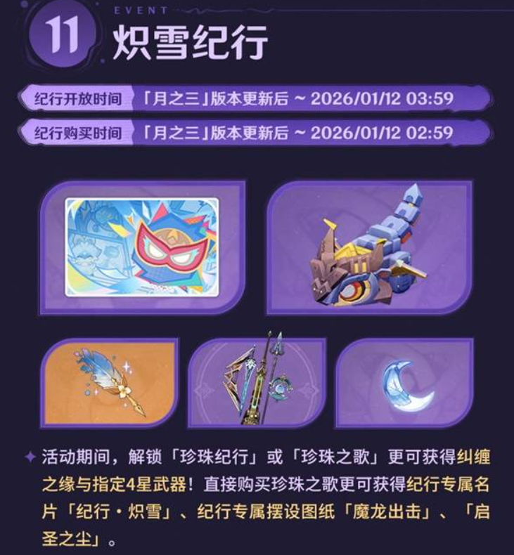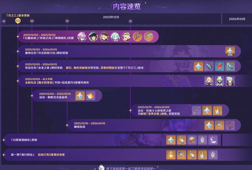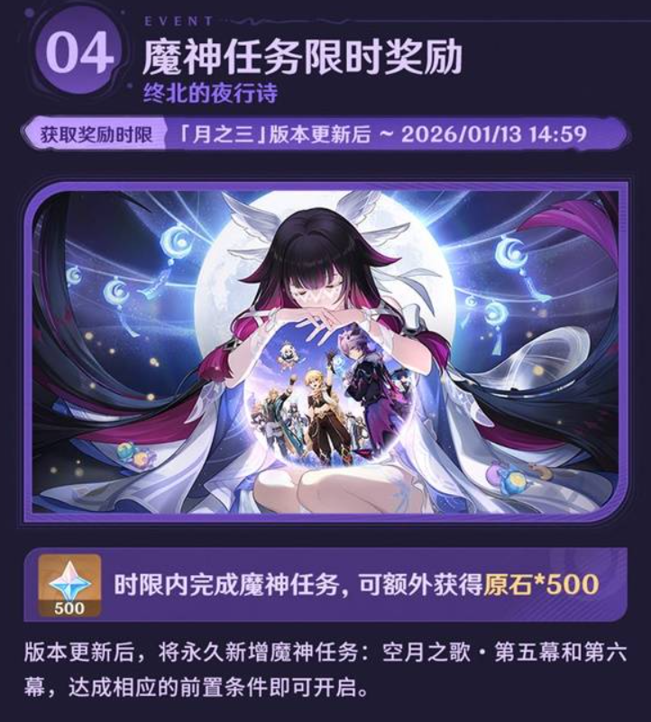 旅行者好呀——「月之三」版本「终北的夜行诗」即将开启,一起来看看新版本中有哪些福利和活动吧!