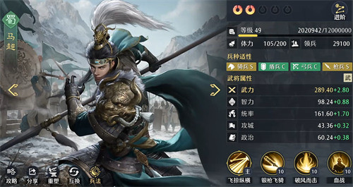 在五虎队里面大家可以用到的角色是关羽,张飞以及马超,那么在这里搭配的话,他们主要是利用自身带来一个重伤的加成,可以带来的骑兵能力其实是非常适合这个阵容使用的,那么在游戏当中大家用关羽来作为主将,就会有足够的武力值,在这个阵容进行搭配的时候,大家也要注意其中武将他们因为能力上面不太一样,所以可以搭配的技能也是不太一样的,这里在技能效果上面,大家根据他的能力来进行选择的话,可以根据他当前的不同定位来选择,因为很多玩家会把马超当做主将,当然也是可以的,这三个角色其实哪一个做主将都可以。