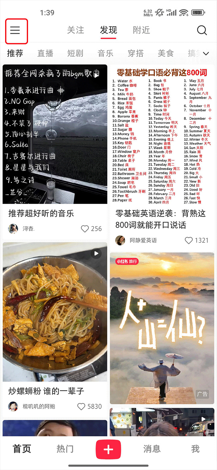 进入软件后点击右上角的三横线标志