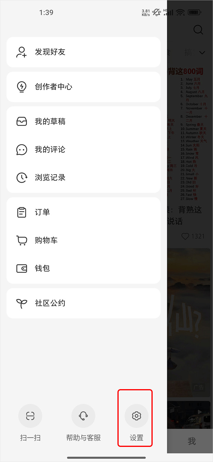 点击设置选项