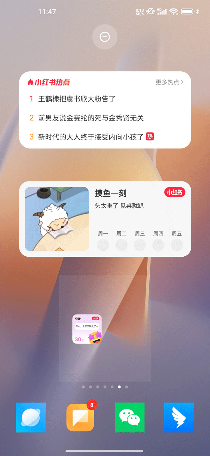 接着即可自由在桌面上调节设置小红书的小组件