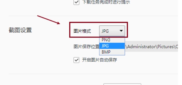 然后找到其中的"截图设置",点击"图片格式"选项卡的下拉按钮,根据个人需要进行选择即可。