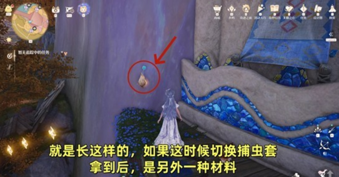 然后等待一会,就可以看到一只虫子飞出来,这时候就可以用捕虫能力收集青青釉蝉啦