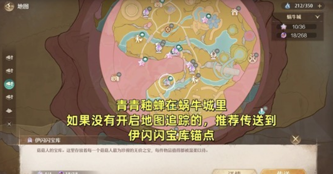 如果没有开启地图追踪,推荐传送到 伊闪闪宝库 锚点;