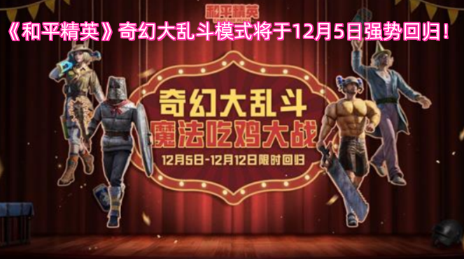 《和平精英》限时玩法奇幻大乱将于12月5日至12月12日再度上线,整座海岛都将开启魔法频道!这是一个属于魔法吃鸡精彩玩法的强势回归!以下是小编为玩家们准备的详细活动资讯内容,有兴趣的玩家们快来一起看看吧!千万不要错过!