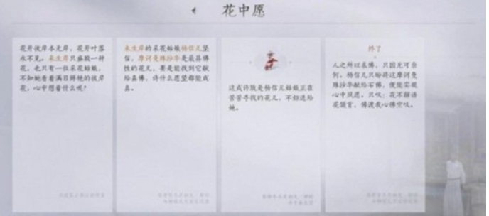 穿过蜿蜒的小径后,会来到一座古韵悠然的庭院,在这里能够遇见任务关键人物杨信儿。与她对话后,玩家会接到寻找“曼殊沙华”的任务指引。
