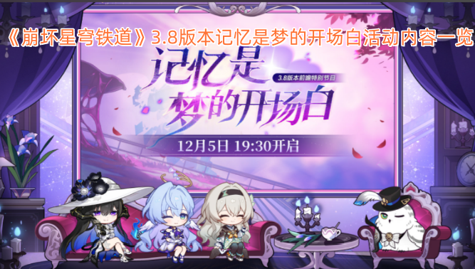 《崩坏:星穹铁道》最近宣布的3.8版本前瞻直播为玩家带来了大量新资讯与内容。官方同时推出了多项活动,完成活动即可获取丰厚的星琼奖励!以下是小编为玩家们准备的详细活动内容资讯,有兴趣的玩家们可以前来查阅!
