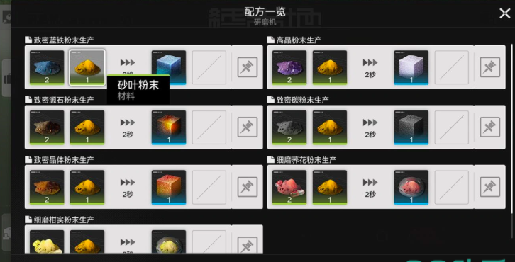 需注意的是,原始砂叶不可直接用于合成或升级,必须经研磨机加工为“砂叶粉末”方可投入后续使用。加工比例为1:3,即每份砂叶产出3份粉末;单次加工耗时仅2秒。推荐配置三台研磨机并联运行,并通过传送带统一供料,以实现连续化生产。优化要点在于确保传送带处于负载均衡状态,同时可部署具备“机械效率加成”特性的干员驻守,进一步提升研磨机工作效率10%至15%。