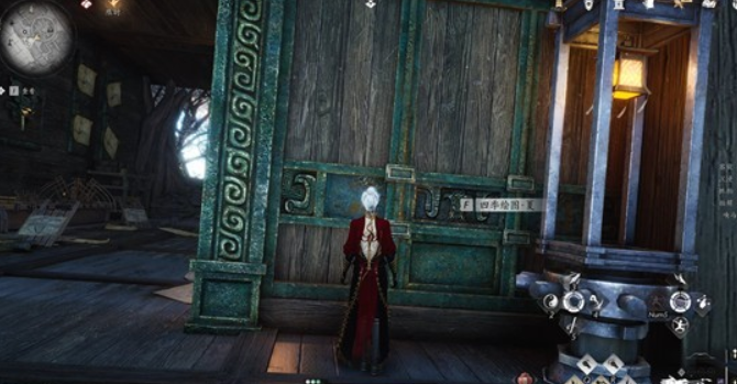 从浮空岛进入飞天城舱内看过去视角,箭头指向是第二个蜡烛,进门前右手的灯那里有四季绘图夏