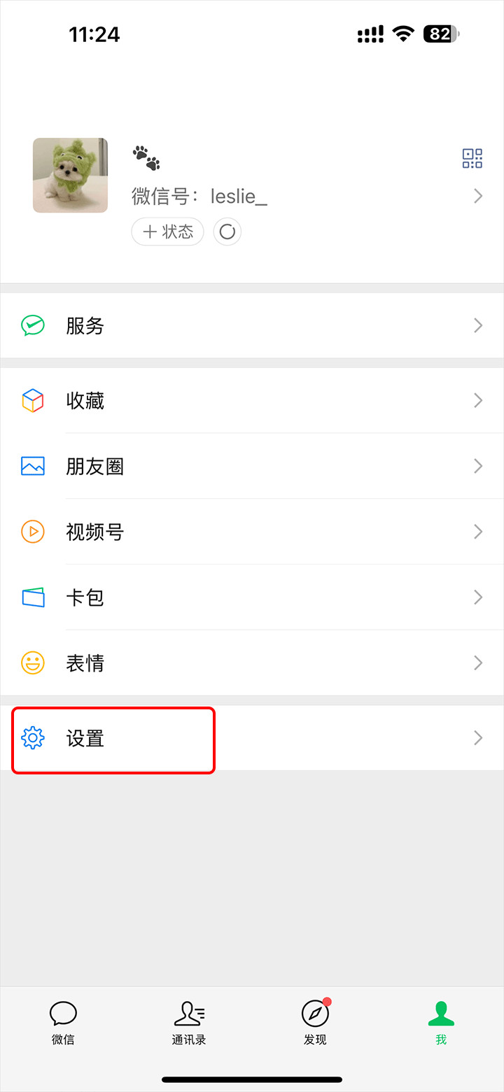 打开微信,进入用户界面,点击【我的】,再选择【设置】选项;