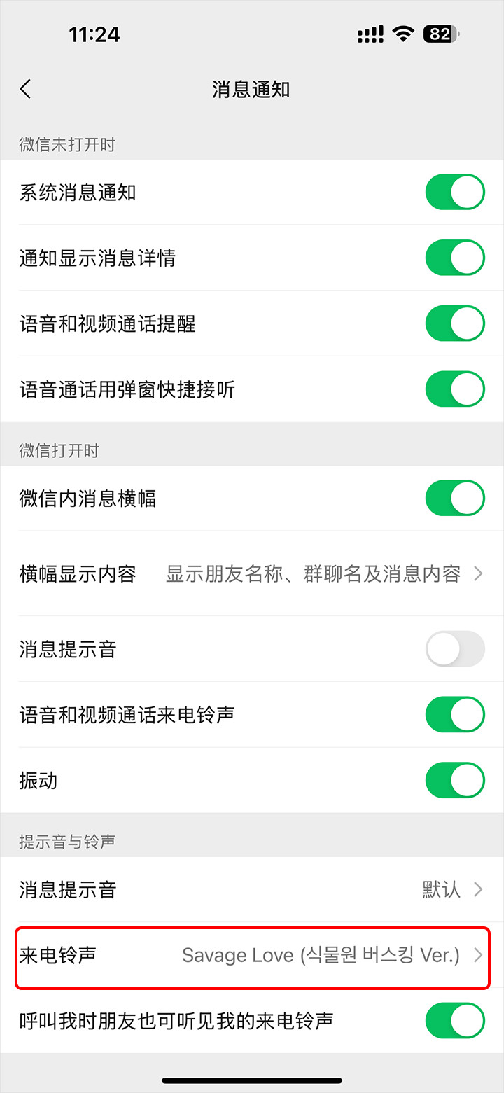 在消息通知页面中找到【来电铃声】选项并点击进入;