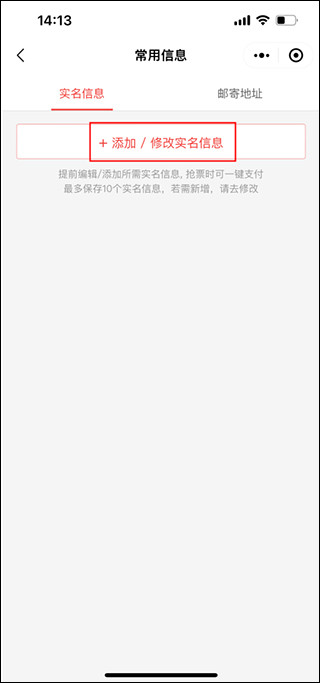 进入到常用信息页面,点击实名信息列表下的“添加/修改实名信息”选项;