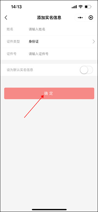 进入到添加实名信息页面,根据页面提示依次填写相关信息,最后点击“确定”按钮即可。