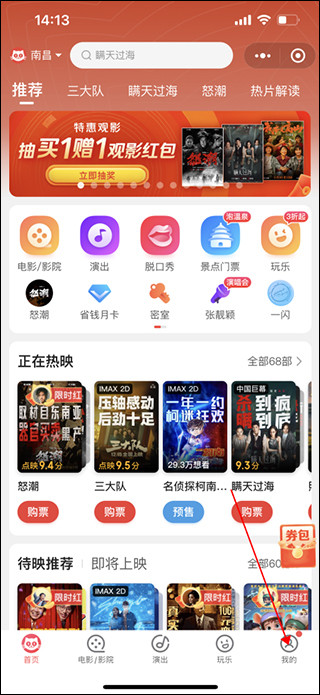 打开猫眼app,进入到用户界面,点击页面右下角的“我的”按钮;