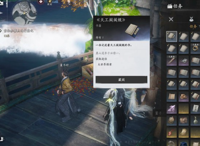 任务附近与董书时对话可以得到一本书,天工阁规则怪谈《天工阁阁规》,墨山道弟子也是有必修一了