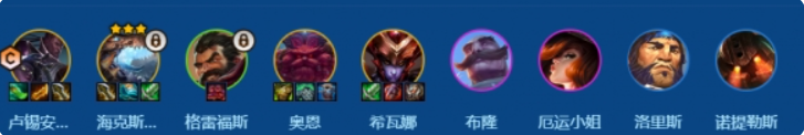 1、前期尽量以4皮尔特沃夫来过渡,注意在8级的时候解锁海克斯霸龙,然后快速上9。