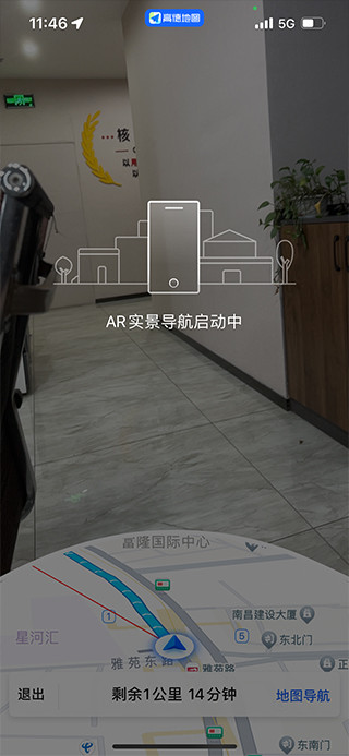 进入3D模式后,抬起手机即可开启AR实景导航模式。