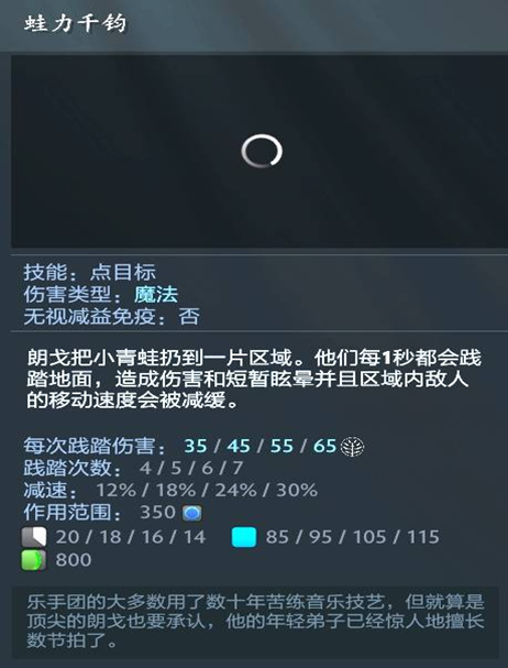 非常强大的buff技能,给的数值很慷慨,配合大招总共能提供近70%的技能增伤。也是蛙后期秒人的底气所在,开大招和蛙闪buff完后,上去虚灵大根一套,直接一个爆炸。